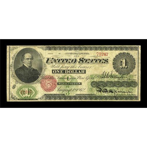 <B>Fr. 17a $1 1862 Legal Tender Very Good-Fine.</B></I> The paper remains firm and the color bright.<BR><BR><b>Shipping:</b> Coins & Currency (<a target="_blank" href="http://www.heritageauctions.com/common/shipping.php">view shipping information</a>)