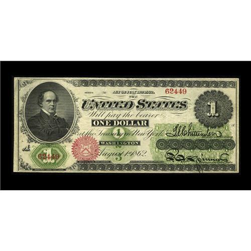 <B>Fr. 17a $1 1862 Legal Tender Very Fine.</B></I> This perfectly original note was stored in the best conditions over the last one hundred and forty years. Unlike so many issues, the paper is still free of compromises, untoned, and attractive.<BR><I>From The Plymouth Rock Collection</B></I>
