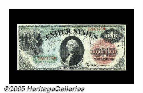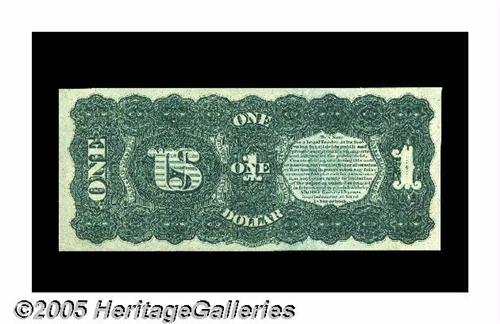<B>Fr. 18 $1 1869 Legal Tender About New.</B></I> A bit tight at the lower left, but with spectacular color and tremendous eye-appeal. The note is without fault save for a single corner-fold at the lower right. A very beautiful note that would slip quite nicely into a set of uncirculated pieces.