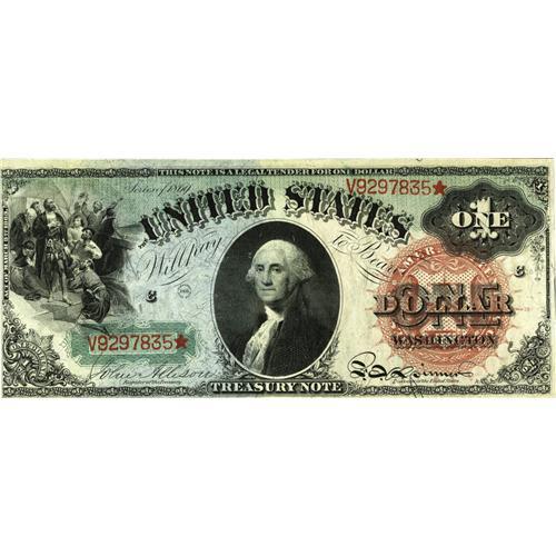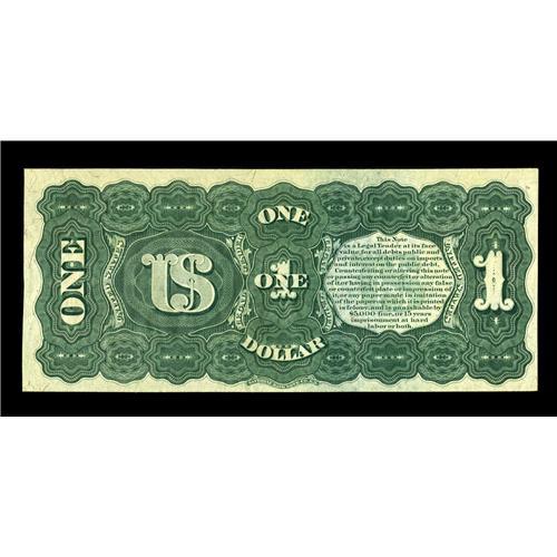 <B>Fr. 18 $1 1869 Legal Tender New.</B></I> Were it not for a single pinhole and tight left margin this wholly original piece would be Very Choice. The swath of blue color is especially bright as is the large spiked Treasury seal.