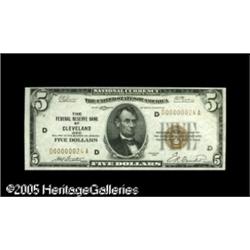 <B>Fr. 1850-D $5 1929 Federal Reserve Bank Note. Crisp Uncirculated.</B></I><BR>Low serial number D00000024A. The back is centered very high and the overprint is somewhat light on the right hand side. Lot:15726