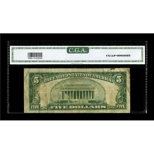 Fr. 1850-F $5 1929 Federal Reserve Bank Note.CGA Fine 1