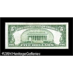 Fr. 1850-G* $5 1929 Federal Reserve Bank Note. Choice <B>Fr. 1850-G* $5 1929 Federal Reserve Bank Note. Choice Crisp Uncirculated.</B></I><BR>An attractive and well centered piece which is one of the very highest grade stars known from this district. <BR><BR><B>Important notice:</B> Heritage usually auctions material at the rate of 200-250 lots per hour. On some occasions eBay Live bid software or the Internet may not be able to keep up with the pace of the auction. We recommend placing a realistic absentee bid now as insurance to avoid disappointment. Occasionally the auctioneer may eliminate or reject an eBay Live bid, and the auctioneer may also reopen a lot after the close of the eBay live bidding (usually because we missed an audience bid), and may reject your bid even if it shows you as the winning bidder. By bidding via eBay Live, you agree that Heritage may award the lot to another bidder at its sole discretion under the circumstances described above or any other reasonable circumstances. Since eBay bids are not shown to us until we open the lot on the floor, we treat those bids just like floor bids. In most cases the floor responds before the eBay bid is presented to us, due to Internet lag time, so for consistency we have made it a policy that floor bids are always considered first over tie eBay live bids. Also please note that all Heritage lots purchased through eBay Live carry a 20% Buyer's Premium. Please make sure you read the Terms and Conditions before you bid. This lot is being auctioned in conjunction with a live floor auction by Heritage Galleries & Auctioneers. All final auction and invoice information will be supplied by Heritage Galleries & Auctioneers, and all other information should be considered preliminary. Lot:16284