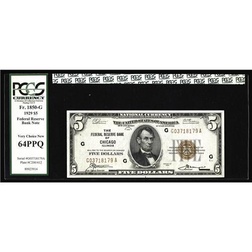 <B>Fr. 1850-G $5 1929 Federal Reserve Bank Note. PCGS Very Choice New 64PPQ.</B></I><BR>This denomination proves to be the most elusive in the higher grades for the Brown Seal FRBN series.