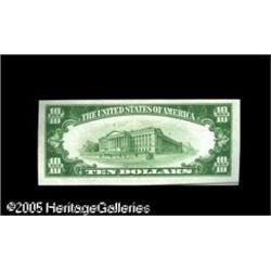 <B>Fr. 1860-B* $10 1929 Federal Reserve Bank Note. Choice About Uncirculated.</B></I><BR>While this is the single most common FRBN star, with 81 pieces recorded in the Cybuski census, truly high grade examples are not terribly common, with perhaps a dozen known. This is an attractive specimen separated from the uncirculated grade due to a very hard to detect centerfold. Lot:15743