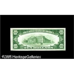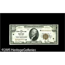 <B>Fr. 1860-B $10 1929 Federal Reserve Bank Note. Choice Crisp Uncirculated.</B></I><BR>Serial number B00000068A. Crackling fresh, but with just a bit too much handling to merit the full gem grade. Lot:15742