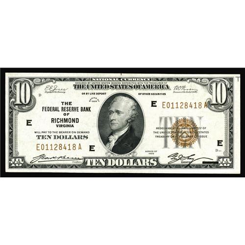 Fr. 1860-E $10 1929 Federal Reserve Bank Note. Choice C Fr. 1860-E $10 1929 Federal Reserve Bank Not