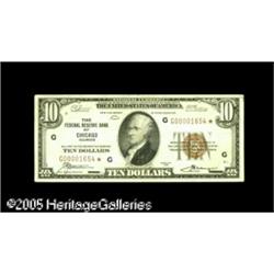 <B>Fr. 1860-G* $10 1929 Federal Reserve Bank Note. Fine-Very Fine.</B></I><BR>Thirteen Chicago $10 stars are now reported, with this as nice or nicer than any, from a total printing of just 12,000 pieces. The Cookson collection example, which was a virtual twin of this note, realized $1495 last year, and this piece brought over $3000 when we sold it in September of 2003. Lot:15754