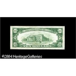 Fr. 1860-H* $10 1929 Federal Reserve Bank Note. Choice <B>Fr. 1860-H* $10 1929 Federal Reserve Bank Note. Choice Crisp Uncirculated.</B></I><BR>A lovely, fully original, boldly embossed example that has excellent centering and wonderful eye appeal, the second of this consecutive pair. Our conservative grade of Choice is due only to a couple of as-made paper wrinkles that do not at all detract from the appearance. A rare star note in this grade, and likely to see considerable bidding interest. <BR><BR><B>Important notice:</B> Heritage usually auctions material at the rate of 200-250 lots per hour. On some occasions eBay Live bid software or the Internet may not be able to keep up with the pace of the auction. We recommend placing a realistic absentee bid now as insurance to avoid disappointment. Occasionally the auctioneer may eliminate or reject an eBay Live bid, and the auctioneer may also reopen a lot after the close of the eBay live bidding (usually because we missed an audience bid), and may reject your bid even if it shows you as the winning bidder. By bidding via eBay Live, you agree that Heritage may award the lot to another bidder at its sole discretion under the circumstances described above or any other reasonable circumstances. Since eBay bids are not shown to us until we open the lot on the floor, we treat those bids just like floor bids. In most cases the floor responds before the eBay bid is presented to us, due to Internet lag time, so for consistency we have made it a policy that floor bids are always considered first over tie eBay live bids. Also please note that all Heritage lots purchased through eBay Live carry a 20% Buyer's Premium. Please make sure you read the Terms and Conditions before you bid. This lot is being auctioned in conjunction with a live floor auction by Heritage Galleries & Auctioneers. All final auction and invoice information will be supplied by Heritage Galleries & Auctioneers, and all other information should be considered preliminary. Lot:16303