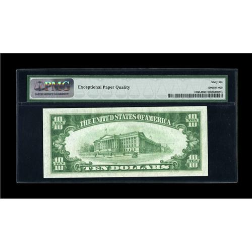 <B>Fr. 1860-I $10 1929 Federal Reserve Bank Note. PMG Gem Uncirculated 66 EPQ.</B></I><BR>Nearly perfect margins frame this Minneapolis $10. Original paper surfaces are clearly seen through the holder. Fewer Series 1929 $10 notes were released by the Minneapolis district than any of the districts.<BR><BR><b>Shipping:</b> Coin/Currency (<a target="_blank" href="http://www.heritageauctions.com/common/shipping.php">view shipping information</a>)