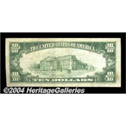 Fr. 1860-K $10 1929 Federal Reserve Bank Note. Very Fine.By far the scarcest district for FRBN Tens, Dallas saw a printing of only 504,000 examples from this series. This VF example is a pleasing, problem-free circulated piece that would make almost any collector happy. <BR><BR><B>Important notice:</B> Heritage usually auctions material at the rate of 200-250 lots per hour. On some occasions eBay Live bid software or the Internet may not be able to keep up with the pace of the auction. We recommend placing a realistic absentee bid now as insurance to avoid disappointment. Occasionally the auctioneer may eliminate or reject an eBay Live bid, and the auctioneer may also reopen a lot after the close of the eBay live bidding (usually because we missed an audience bid), and may reject your bid even if it shows you as the winning bidder. By bidding via eBay Live, you agree that Heritage may award the lot to another bidder at its sole discretion under the circumstances described above or any other reasonable circumstances. Since eBay bids are not shown to us until we open the lot on the floor, we treat those bids just like floor bids. In most cases the floor responds before the eBay bid is presented to us, due to Internet lag time, so for consistency we have made it a policy that floor bids are always considered first over tie eBay live bids. Also please note that all Heritage lots purchased through eBay Live carry a 20% Buyer's Premium. Please make sure you read the Terms and Conditions before you bid. <BR><BR><B>IMPORTANT ANNOUNCEMENT ABOUT RESERVES:</B> Heritage now divulges all reserves on its web site 7 days before every auction. If you want to know whether the reserve on this lot has been met, and if not, what the reserve amount is, please visit this lot page on the HeritageCoin.com web site, or email: bid@HeritageGalleries.com