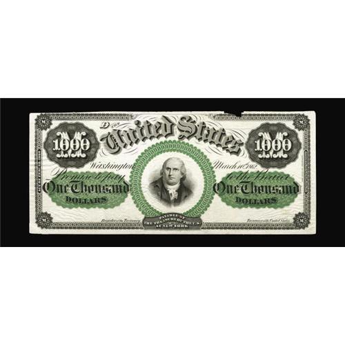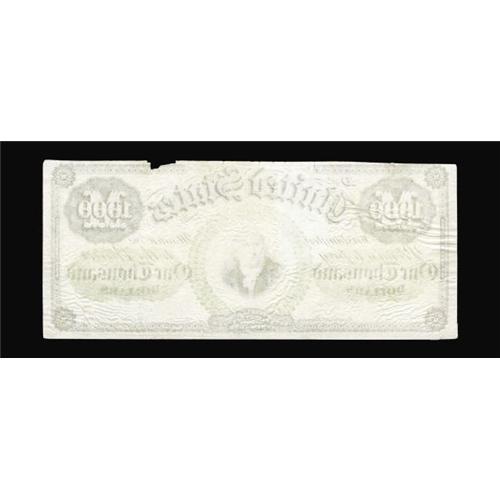 <B>Fr. 186a-b Hessler UNL $1000 1862 Legal Tender Face Proof About New.</B></I> The only reported types of proofs for this issue have been india paper on card stock. This note which is on india paper alone has suffered some damage over time. There is a piece missing at upper right and the corner at lower left has been repaired. The last known sale of a face proof was reported in 1997.