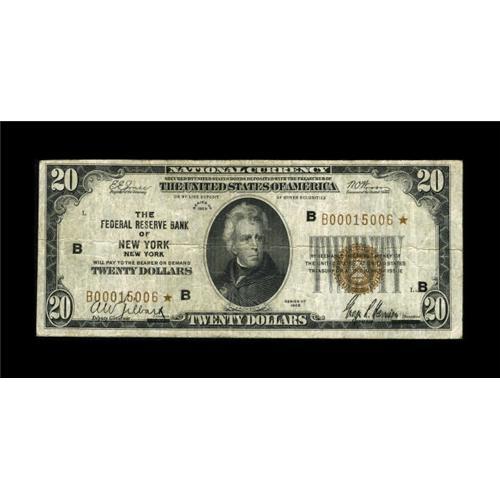 <B>Fr. 1870-B* $20 1929 Federal Reserve Bank Note. Fine-Very Fine.</B></I><BR>We are pleased with the originality of this note. The paper is solid and the overprint remains bold.<BR><BR><b>Shipping:</b> Coin/Currency (<a target="_blank" href="http://www.heritageauctions.com/common/shipping.php">view shipping information</a>)