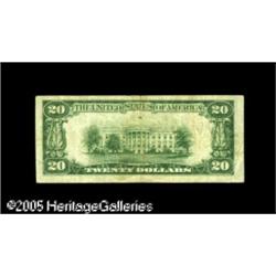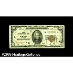 <B>Fr. 1870-B* $20 1929 Federal Reserve Bank Note. Fine-Very Fine.</B></I><BR>A relatively common star with 49 pieces listed in the census. This is an evenly circulated piece just a hair nicer than the Cookson specimen, which fetched $488 last January. Lot:15765