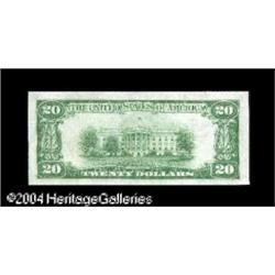 Fr. 1870-B $20 1929 Federal Reserve Bank Note. Gem Cr <B>Fr. 1870-B $20 1929 Federal Reserve Bank Note. Gem Crisp Uncirculated.</B></I><BR>Perfectly centered and pack fresh. <BR><BR><B>Important notice:</B> Heritage usually auctions material at the rate of 200-250 lots per hour. On some occasions eBay Live bid software or the Internet may not be able to keep up with the pace of the auction. We recommend placing a realistic absentee bid now as insurance to avoid disappointment. Occasionally the auctioneer may eliminate or reject an eBay Live bid, and the auctioneer may also reopen a lot after the close of the eBay live bidding (usually because we missed an audience bid), and may reject your bid even if it shows you as the winning bidder. By bidding via eBay Live, you agree that Heritage may award the lot to another bidder at its sole discretion under the circumstances described above or any other reasonable circumstances. Since eBay bids are not shown to us until we open the lot on the floor, we treat those bids just like floor bids. In most cases the floor responds before the eBay bid is presented to us, due to Internet lag time, so for consistency we have made it a policy that floor bids are always considered first over tie eBay live bids. Also please note that all Heritage lots purchased through eBay Live carry a 20% Buyer's Premium. Please make sure you read the Terms and Conditions before you bid. This lot is being auctioned in conjunction with a live floor auction by Heritage Galleries & Auctioneers. All final auction and invoice information will be supplied by Heritage Galleries & Auctioneers, and all other information should be considered preliminary. Lot:16306