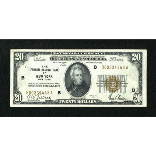 <B>Fr. 1870-B $20 1929 Federal Reserve Bank Note. Crisp Uncirculated.</B></I><BR> This is an original note that has plenty of solid embossing and nice margins. Only some handling holds it back from a higher grade.<BR><BR><b>Shipping:</b> Coins & Currency (<a target="_blank" href="http://www.heritageauctions.com/common/shipping.php">view shipping information</a>)