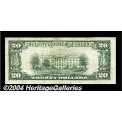 Fr. 1870-B* $20 1929 Federal Reserve Bank Note. Very Fine-Extremely Fine.A nice natural New York Star Twenty, well margined and lightly circulated with plenty of body for the grade. <BR><BR><B>Important notice:</B> Heritage usually auctions material at the rate of 200-250 lots per hour. On some occasions eBay Live bid software or the Internet may not be able to keep up with the pace of the auction. We recommend placing a realistic absentee bid now as insurance to avoid disappointment. Occasionally the auctioneer may eliminate or reject an eBay Live bid, and the auctioneer may also reopen a lot after the close of the eBay live bidding (usually because we missed an audience bid), and may reject your bid even if it shows you as the winning bidder. By bidding via eBay Live, you agree that Heritage may award the lot to another bidder at its sole discretion under the circumstances described above or any other reasonable circumstances. Since eBay bids are not shown to us until we open the lot on the floor, we treat those bids just like floor bids. In most cases the floor responds before the eBay bid is presented to us, due to Internet lag time, so for consistency we have made it a policy that floor bids are always considered first over tie eBay live bids. Also please note that all Heritage lots purchased through eBay Live carry a 20% Buyer's Premium. Please make sure you read the Terms and Conditions before you bid. <BR><BR><B>IMPORTANT ANNOUNCEMENT ABOUT RESERVES:</B> Heritage now divulges all reserves on its web site 7 days before every auction. If you want to know whether the reserve on this lot has been met, and if not, what the reserve amount is, please visit this lot page on the HeritageCoin.com web site, or email: bid@HeritageGalleries.com
