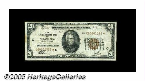 <B>Fr. 1870-C* $20 1929 Federal Reserve Bank Note. Very Fine-Extremely Fine.</B></I><BR>A nice circulated example of the most available of the star FRBN's.