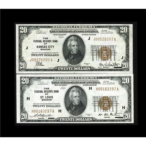 Fr. 1870-H, 1870-J $20 1929 Federal Reserve Bank Notes. Fr. 1870-H, 1870-J $20 1929 Federal Reserve