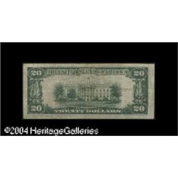 Fr. 1870-I* $20 1929 Federal Reserve Bank Note. Fine <B>Fr. 1870-I* $20 1929 Federal Reserve Bank Note. Fine.</B></I><BR>An evenly circulated example of this tougher Minneapolis district star. There is a tiny split in the left margin barely worthy of mention. <BR><BR><B>Important notice:</B> Heritage usually auctions material at the rate of 200-250 lots per hour. On some occasions eBay Live bid software or the Internet may not be able to keep up with the pace of the auction. We recommend placing a realistic absentee bid now as insurance to avoid disappointment. Occasionally the auctioneer may eliminate or reject an eBay Live bid, and the auctioneer may also reopen a lot after the close of the eBay live bidding (usually because we missed an audience bid), and may reject your bid even if it shows you as the winning bidder. By bidding via eBay Live, you agree that Heritage may award the lot to another bidder at its sole discretion under the circumstances described above or any other reasonable circumstances. Since eBay bids are not shown to us until we open the lot on the floor, we treat those bids just like floor bids. In most cases the floor responds before the eBay bid is presented to us, due to Internet lag time, so for consistency we have made it a policy that floor bids are always considered first over tie eBay live bids. Also please note that all Heritage lots purchased through eBay Live carry a 20% Buyer's Premium. Please make sure you read the Terms and Conditions before you bid. This lot is being auctioned in conjunction with a live floor auction by Heritage Galleries & Auctioneers. All final auction and invoice information will be supplied by Heritage Galleries & Auctioneers, and all other information should be considered preliminary. Lot:16311