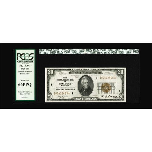 <B>Fr. 1870-I $20 1929 Federal Reserve Bank Note. PCGS Gem New 66PPQ.</B></I><BR>A most attractive example from this well collected district.