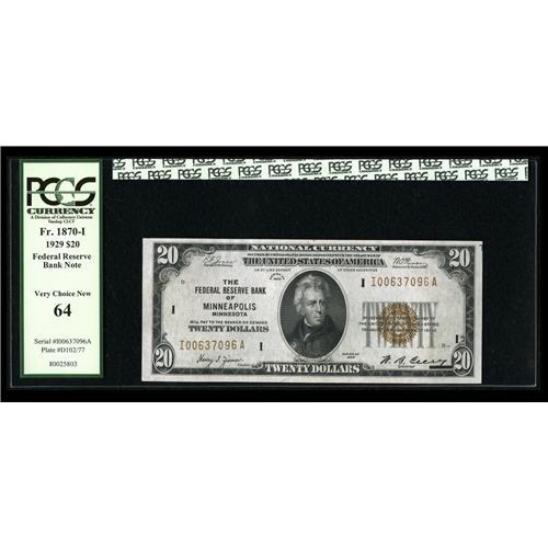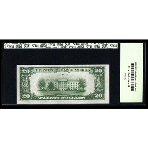 <B>Fr. 1870-I $20 1929 Federal Reserve Bank Note. PCGS Very Choice New 64.</B></I><BR>Here is a nice example from this popular district.