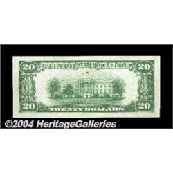 Fr. 1870-J $20 1929 Federal Reserve Bank Note. Gem Crisp Uncirculated.Another beautiful Gem FRBN, this one a Gem $20 from the scarcer Kansas City district. Crackling fresh and fully original. <BR><BR><B>Important notice:</B> Heritage usually auctions material at the rate of 200-250 lots per hour. On some occasions eBay Live bid software or the Internet may not be able to keep up with the pace of the auction. We recommend placing a realistic absentee bid now as insurance to avoid disappointment. Occasionally the auctioneer may eliminate or reject an eBay Live bid, and the auctioneer may also reopen a lot after the close of the eBay live bidding (usually because we missed an audience bid), and may reject your bid even if it shows you as the winning bidder. By bidding via eBay Live, you agree that Heritage may award the lot to another bidder at its sole discretion under the circumstances described above or any other reasonable circumstances. Since eBay bids are not shown to us until we open the lot on the floor, we treat those bids just like floor bids. In most cases the floor responds before the eBay bid is presented to us, due to Internet lag time, so for consistency we have made it a policy that floor bids are always considered first over tie eBay live bids. Also please note that all Heritage lots purchased through eBay Live carry a 20% Buyer's Premium. Please make sure you read the Terms and Conditions before you bid. <BR><BR><B>IMPORTANT ANNOUNCEMENT ABOUT RESERVES:</B> Heritage now divulges all reserves on its web site 7 days before every auction. If you want to know whether the reserve on this lot has been met, and if not, what the reserve amount is, please visit this lot page on the HeritageCoin.com web site, or email: bid@HeritageGalleries.com