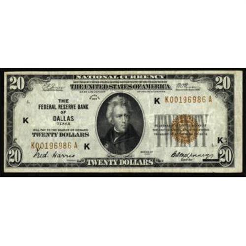 Fr. 1870-K. 1929 $20 Federal Reserve Bank Note. PMG Very Fine 25.