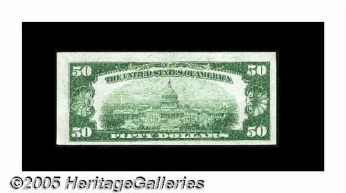 <B>Fr. 1880-B $50 1929 Federal Reserve Bank Note. Choice Crisp Uncirculated.</B></I><BR>A fully crisp and orignal $50 New York FRBN that would have been in the Gem category but for centering issues.