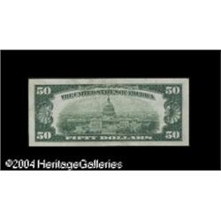 Fr. 1880-B* $50 1929 Federal Reserve Bank Note. Choice <B>Fr. 1880-B* $50 1929 Federal Reserve Bank Note. Choice Crisp Uncirculated.</B></I><BR>High denomination star notes from the FRBN district are all rare in high grades. This New York district example displays nice embossing and fully original paper surfaces, and comes very close to the Gem grade. With an Oakes & Schwartz valuation of $3,500, we can expect this example to likely reach or even exceed... <BR><BR><B>Important notice:</B> Heritage usually auctions material at the rate of 200-250 lots per hour. On some occasions eBay Live bid software or the Internet may not be able to keep up with the pace of the auction. We recommend placing a realistic absentee bid now as insurance to avoid disappointment. Occasionally the auctioneer may eliminate or reject an eBay Live bid, and the auctioneer may also reopen a lot after the close of the eBay live bidding (usually because we missed an audience bid), and may reject your bid even if it shows you as the winning bidder. By bidding via eBay Live, you agree that Heritage may award the lot to another bidder at its sole discretion under the circumstances described above or any other reasonable circumstances. Since eBay bids are not shown to us until we open the lot on the floor, we treat those bids just like floor bids. In most cases the floor responds before the eBay bid is presented to us, due to Internet lag time, so for consistency we have made it a policy that floor bids are always considered first over tie eBay live bids. Also please note that all Heritage lots purchased through eBay Live carry a 20% Buyer's Premium. Please make sure you read the Terms and Conditions before you bid. This lot is being auctioned in conjunction with a live floor auction by Heritage Galleries & Auctioneers. All final auction and invoice information will be supplied by Heritage Galleries & Auctioneers, and all other information should be considered preliminary. Lot:16313