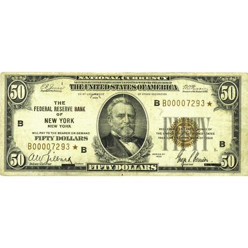 <B>Fr. 1880-B* $50 1929 Federal Reserve Bank Note. Very Fine.</B></I><BR>A nice example which makes a perfect type FRBN Star.