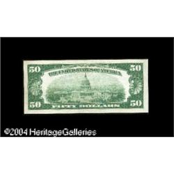 Fr. 1880-G $50 1929 Federal Reserve Bank Note. Gem CUF <B>Two Different Types of Brown Seals.</B></I><BR>Fr. 1880-G $50 1929 Federal Reserve Bank Note. Gem CU<BR>Fr. 2300 $1 1935A Hawaii Silver Certificate. Gem CU.<BR>Nice margins are found on this pair.<BR> 2 notes <BR><BR><B>Important notice:</B> Heritage usually auctions material at the rate of 200-250 lots per hour. On some occasions eBay Live bid software or the Internet may not be able to keep up with the pace of the auction. We recommend placing a realistic absentee bid now as insurance to avoid disappointment. Occasionally the auctioneer may eliminate or reject an eBay Live bid, and the auctioneer may also reopen a lot after the close of the eBay live bidding (usually because we missed an audience bid), and may reject your bid even if it shows you as the winning bidder. By bidding via eBay Live, you agree that Heritage may award the lot to another bidder at its sole discretion under the circumstances described above or any other reasonable circumstances. Since eBay bids are not shown to us until we open the lot on the floor, we treat those bids just like floor bids. In most cases the floor responds before the eBay bid is presented to us, due to Internet lag time, so for consistency we have made it a policy that floor bids are always considered first over tie eBay live bids. Also please note that all Heritage lots purchased through eBay Live carry a 20% Buyer's Premium. Please make sure you read the Terms and Conditions before you bid. This lot is being auctioned in conjunction with a live floor auction by Heritage Galleries & Auctioneers. All final auction and invoice information will be supplied by Heritage Galleries & Auctioneers, and all other information should be considered preliminary. Lot:16611