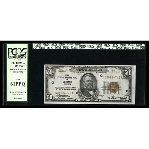 <B>Fr. 1880-G $50 1929 Federal Reserve Bank Note. PCGS New 61PPQ.</B></I><BR>This example is a bit less well centered on both face and back than we like to see.