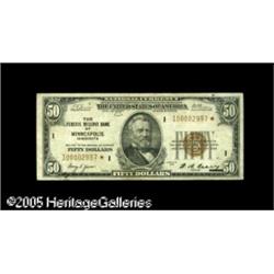 <B>Fr. 1880-I* $50 1929 Federal Reserve Bank Note. Very Fine.</B></I><BR>A great note which was one of the highlights of the Cookson collection, where it was obtained a year ago. This is one of only two Minneapolis $50 star examples extant, with the second having sold in the Oakes collection and now in very strong hands. This piece realized $4887.50 when we sold it last year, and will likely sell for just about that number again this evening. When this note disappears, it may be a very long time until the next is available at any price. Lot:15779