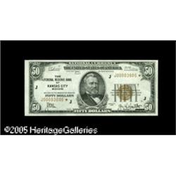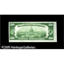 <B>Fr. 1880-J* $50 1929 Federal Reserve Bank Note. Choice Crisp Uncirculated.</B></I><BR>One of a short run of uncirculated examples that has made this the "type" star in this denomination. The centering here is less than stellar, especially the reverse, which is very poorly aligned. Lot:15781