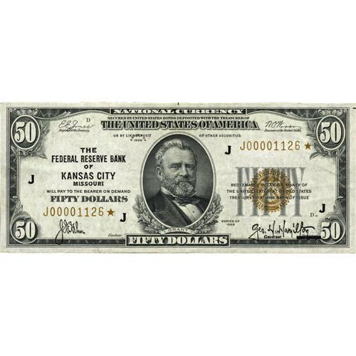 <B>Fr. 1880-J* $50 1929 Federal Reserve Bank Note. Very Fine-Extremely Fine.</B></I><BR>A well embossed, bright representative that has plenty of crispness and lots of color.
