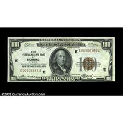 Fr. 1890-E $100 1929 Federal Reserve Bank Note. About Uncirculated.Serial number E00006589A. The centering is low on both face and back. Important notice: We expect to be auctioning lots at the rate of 200-250 per hour. Sometimes eBay Premier live bid software cannot keep up with that pace, so we strongly recommend that you place a realistic proxy bid now as insurance to avoid disappointment. Also please note that all Heritage/CAA lots purchased through eBay Premier carry a 20% Buyer's Premium. Please make sure you read the Terms and Conditions.