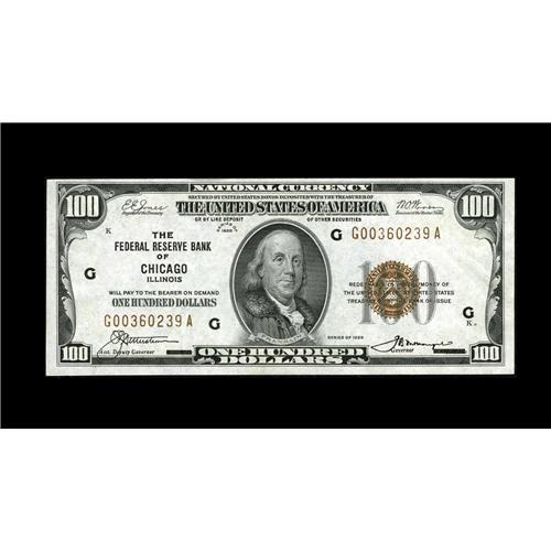<B>Fr. 1890-G $100 1929 Federal Reserve Bank Note. Crisp Uncirculated.</B></I><BR>This FRBN exhibits some teller counting ticks, but retains all the CU qualities.