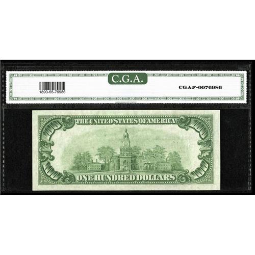 Fr. 1890-I $100 1929 Federal Reserve Bank Note. CGA Gem Fr. 1890-I $100 1929 Federal Reserve Bank No