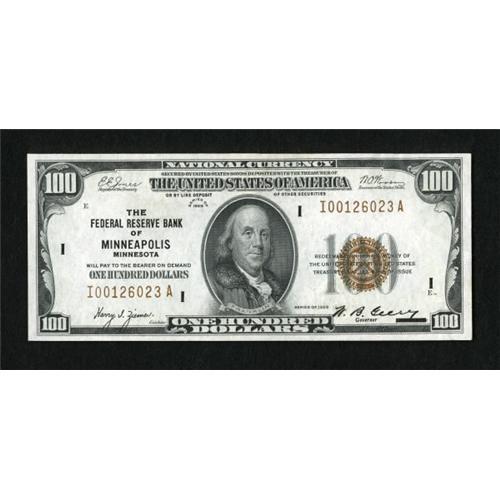 <B>Fr. 1890-I $100 1929 Federal Reserve Bank Note. Choice Crisp Uncirculated.</B></I><BR> Embossing and decent margins are noted on this pretty example of a tougher bank and denomination in the FRBN series. While printed in 1933, most of the $100 FRBNs were not released until during World War 2. <BR><I>From The J.S. Weber Collection.</B></I><BR><BR><b>Shipping:</b> Coins & Currency (<a target="_blank" href="http://www.heritageauctions.com/common/shipping.php">view shipping information</a>)