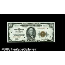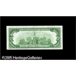 <B>Fr. 1890-J* $100 1929 Federal Reserve Bank Note. Choice Crisp Uncirculated.</B></I><BR>By far the most common district for $100 star examples, with this district responsible for just over half of the stars listed in the census and virtually all of the uncirculated pieces known. This specimen is fully gem but for its very tight bottom margin. Lot:15791