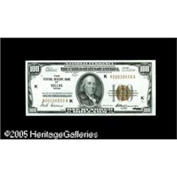 <B>Fr. 1890-K $100 1929 Federal Reserve Bank Note. Choice Crisp Uncirculated.</B></I><BR>A bright and exceptionally well centered example from the run discovered and sold by long time Fort Worth coin dealer R.E. Wallace. Lot:15792
