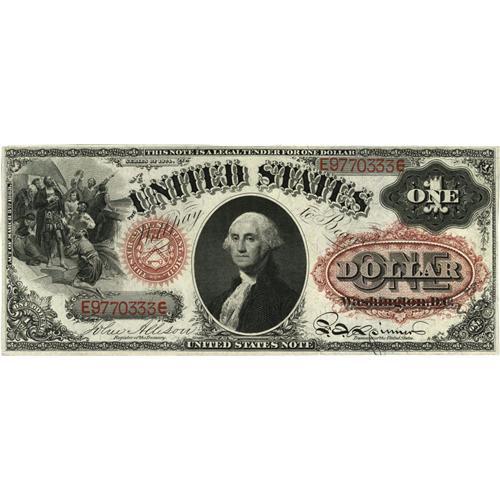 <B>Fr. 19 $1 1874 Legal Tender Choice New.</B></I> Decently margined and original, with what may well be the brightest red overprint we've ever seen for this type. If the top margin were a touch large, we would expect a Gem grade out of this beauty.<BR><I>From The Plymouth Rock Collection</B></I>