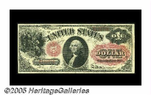 <B>Fr. 19 $1 1874 Legal Tender Extremely Fine.</B></I> A terrific example of this one-number type, with three huge margins (the left face is a bit short) and incredible ink color. The red overprint is particularly bold.