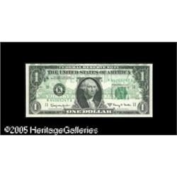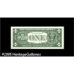 <B>Fr. 1901-K $1 1963A Federal Reserve Note. Gem New.</B></I><BR>This note has an dark inverted back-to-face offset covering the top two thirds of the note. A very rare error type and in absolutely pristine condition. We sold this note once before and it realized $2,640 at that time. Lot:15325