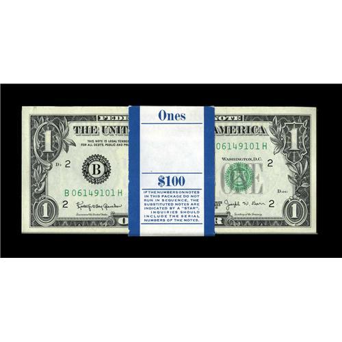 <B>Fr. 1902-B $1 1963B Federal Reserve Notes. Original of 100. Gem Crisp Uncirculated.</B></I><BR>Strong embossing is found on these Barr notes.<BR><BR><b>Shipping:</b> Coin/Currency (<a target="_blank" href="http://www.heritageauctions.com/common/shipping.php">view shipping information</a>)