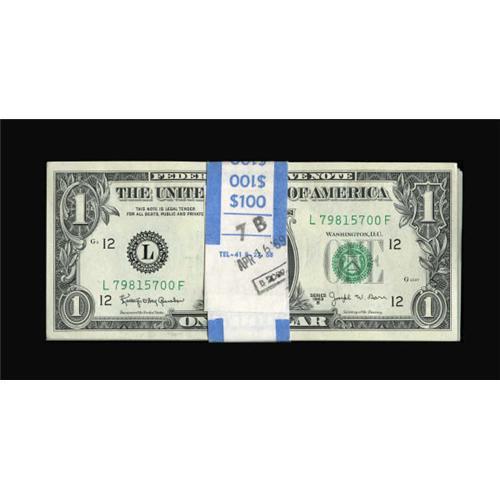 <B>Fr. 1902-L $1 1963B Federal Reserve Notes. Original Pack of 100. Choice Crisp Uncirculated</B></I>.<BR> The strap around these notes is stamped Apr. 16, 1969. <BR><BR><b>Shipping:</b> Coins & Currency (<a target="_blank" href="http://www.heritageauctions.com/common/shipping.php">view shipping information</a>)