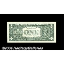Fr. 1903-C* $1 1969 Federal Reserve Note. Gem Crisp Uncirculated.A beautiful example of this scarce special printing. The following description of this issue comes from the Oakes and Schwartz reference: "After completion of the printing of Series 1969A, 13,000 sheets of Series 1969 without third printing were found. Rather than waste these notes, the Bureau decided to overprint them as star notes. The production schedule called for star notes for Philadelphia, so the 13,000 sheets were assigned to this district. Serial numbers up to 05120000 had already been used for 1969A Philadelphia star notes, so the first serial number set up for this production was 05120001. This special run was not realized by collectors until 15 to 18 months after the notes had been issued, and locating even circulated examples of these high numbered 1969 Philly stars has been very difficult." Scarce in any grade, this Gem CU example should see spirited bidding. These have lately been selling in the range of. . . <BR><BR><B>Important notice:</B> Heritage usually auctions material at the rate of 200-250 lots per hour. On some occasions eBay Live bid software or the Internet may not be able to keep up with the pace of the auction. We recommend placing a realistic absentee bid now as insurance to avoid disappointment. Occasionally the auctioneer may eliminate or reject an eBay Live bid, and the auctioneer may also reopen a lot after the close of the eBay live bidding (usually because we missed an audience bid), and may reject your bid even if it shows you as the winning bidder. By bidding via eBay Live, you agree that Heritage may award the lot to another bidder at its sole discretion under the circumstances described above or any other reasonable circumstances. Since eBay bids are not shown to us until we open the lot on the floor, we treat those bids just like floor bids. In most cases the floor responds before the eBay bid is presented to us, due to Internet lag time, so for consistency we have made it a policy that floor bids are always considered first over tie eBay live bids. Also please note that all Heritage lots purchased through eBay Live carry a 20% Buyer's Premium. Please make sure you read the Terms and Conditions before you bid. <BR><BR><B>IMPORTANT ANNOUNCEMENT ABOUT RESERVES:</B> Heritage now divulges all reserves on its web site 7 days before every auction. If you want to know whether the reserve on this lot has been met, and if not, what the reserve amount is, please visit this lot page on the HeritageCoin.com web site, or email: bid@HeritageGalleries.com