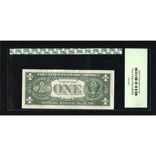 <B>Fr. 1903-C* $1 1969 Federal Reserve Note. PCGS Very Choice New 64PPQ.</B></I><BR> This is a beautiful example of this highly prized special printing. The following description of this issue is described as follows by Oakes and Schwartz: "After completion of the printing of Series 1969A, 13,000 sheets of Series 1969 without third printing were found. Rather than waste these sheets, the Bureau decided to overprint them as star notes. The production schedule called for star notes for Philadelphia, so the 13,000 sheets were assigned to this district. Serial numbers up to 05120000 had already been used for 1969A Philadelphia star notes, so the first serial number set up for this production was 05120001. This special run was not realized by collectors until 15 to 18 months after the notes had been issued, and locating even circulated examples of these high numbered, 1969 C-*s, has been very difficult." Scarce in any grade, this example which has garnered the desirable PPQ designation should see spirited bidding<BR><BR><b>Shipping:</b> Coins & Currency (<a target="_blank" href="http://www.heritageauctions.com/common/shipping.php">view shipping information</a>)