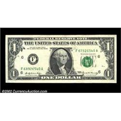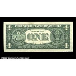 Fr. 1903-F $1 1969 Federal Reserve Note. Extremely Fine-About Uncirculated. Mismatched serial numbers F68926540A/F67926540A. Important notice: We expect to be auctioning lots at the rate of 200-250 per hour. Sometimes eBay Premier live bid software cannot keep up with that pace, so we strongly recommend that you place a realistic proxy bid now as insurance to avoid disappointment. Also please note that all Heritage/CAA lots purchased through eBay Premier carry a 20% Buyer's Premium. Please make sure you read the Terms and Conditions.